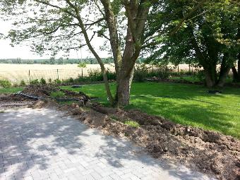Wir benutzen keine Maschinen / Grabenfräsen, die Beschädigungen in Ihrem Garten gehen daher gegen "Null". Es dauert nur unwesentlich länger, ist aber weitaus schonender und ergibt ein schöneres Ergebnis.
